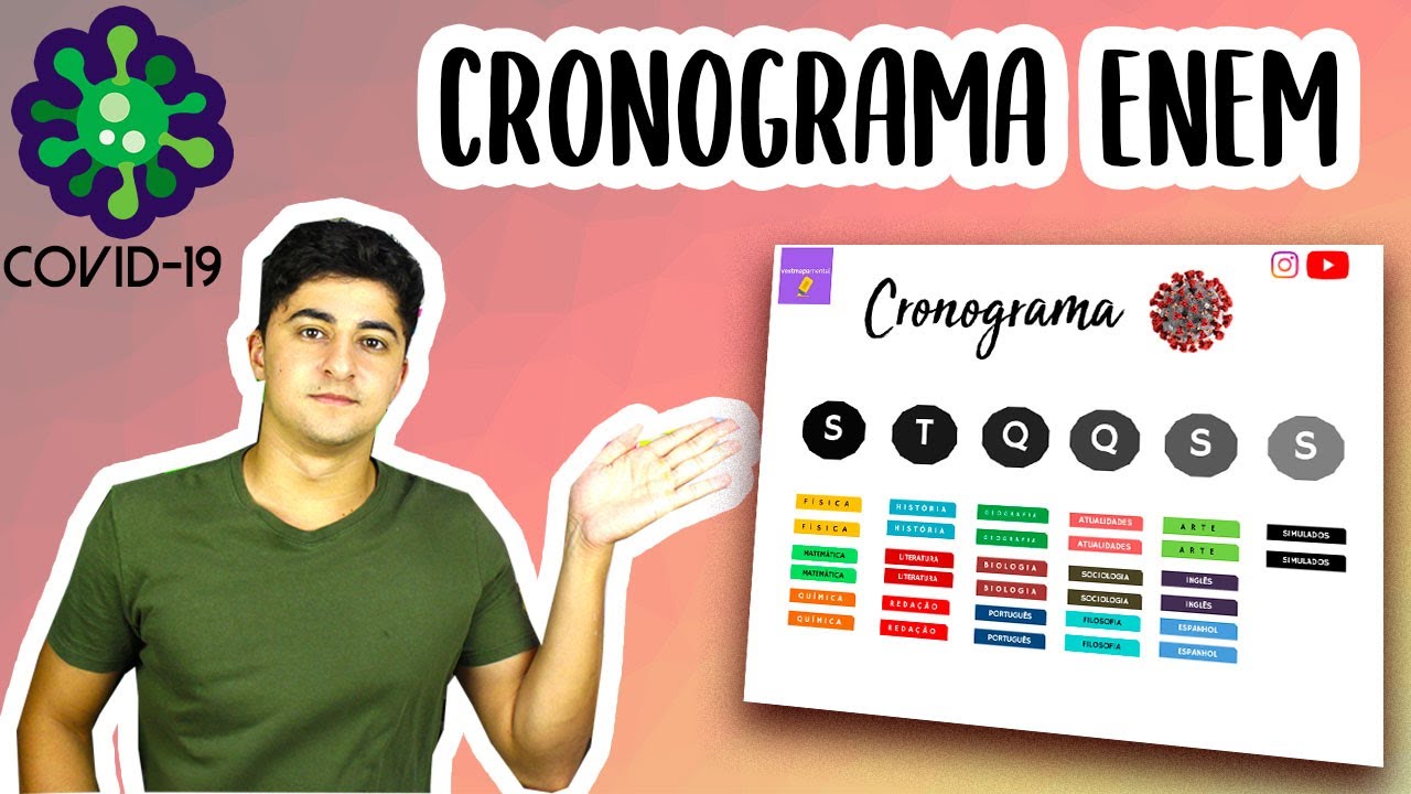 Organização é o segredo para chegar ao #topodoenem! O cronograma do enem 2021 ainda não foi divulgado oficialmente, normalmente ele é publicado junto com o edital do exame nacional do ensino médio. Confira o cronograma do enem 2019 divulgado pelo inep. Um cronograma de estudos é o passo inicial e fundamental para quem adotou o vestibular e enem como o objetivo de 2020. grátis cronograma de estudos semanal enem 2021. Nele está estruturado por sumários e check list. É perfeito para quem está estudando para concurso público, enem, oab ou qualquer outra prova. Entenda tudo sobre o cronograma enem 2021. Datas do enem em março. Conheça o calendário do enem 2020. Cronograma de estudos com duração de 5 meses, para você se preparar ao máximo para o enem nesse próximo 2021. Conciliado ao nosso método cronograma enem 2020, tentarei dar várias dicas para que vocês possam obter sucesso e achei um site muito legal que você pode pegar o material pdf gratuito. Com o cronograma e o seu tempo determinado de estudo, será mais fácil manter o foco e cumprir todos os temas listados no cronograma de estudos enem 2020.